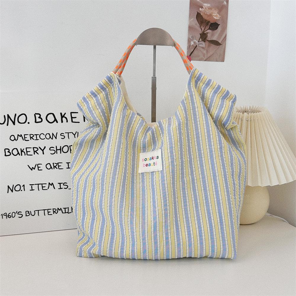 ins Полосатая холщовая сумка женская большая вместимость студенческая дорожная легкая рабочая сумка через плечо