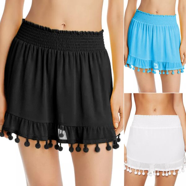 ins foreign trade european and american-style womens beach dress new elastic waist design tassel hair ball ruffled high-waist package hip skirt sale