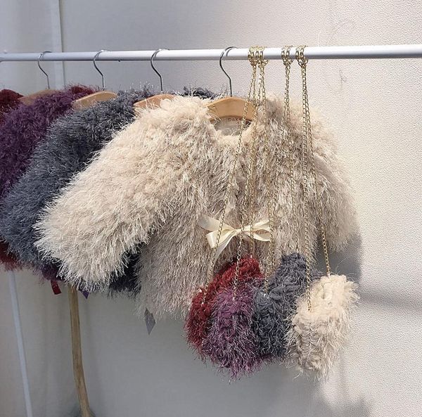 ins kids fleece coat winter new girls round collar tassel fleece outwear with bags children thicken warm princess coat a50441108318, Blue;gray