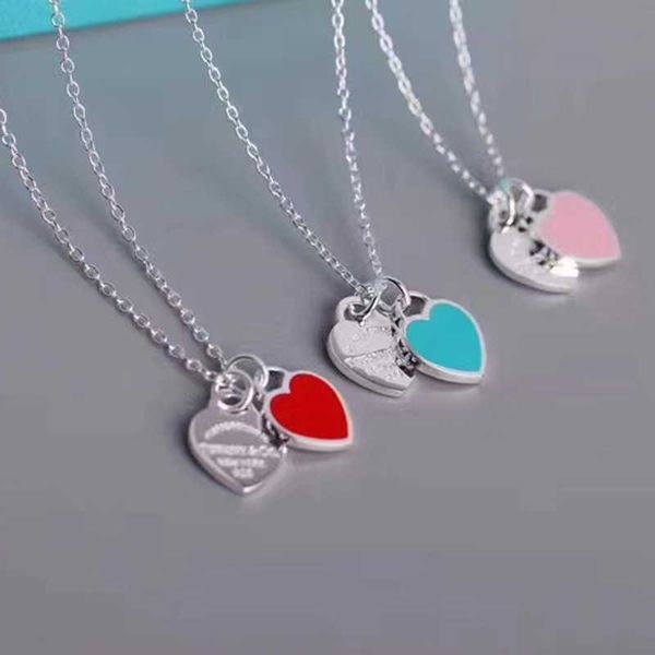 internet celebrity tiffayffay 1 s925 enamel cnc word printiffayng peach heart necklace blue pink double shaped pendant female, Black