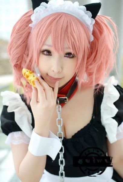 inu x boku ss roromiya karuta pink double ponytail cosplay hair wig, Black;brown