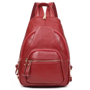 Multifunctional Double Women Shoulder Bag Female Genuine Leather Backpack Korean Style Soft Leather Breastbag Small