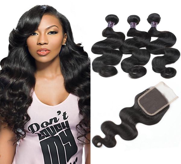 ishow peruvian human hair weave 3 bundles with lace closure virgin hair extensions 10a brazilian body wave wefts for women girls n6464425, Black