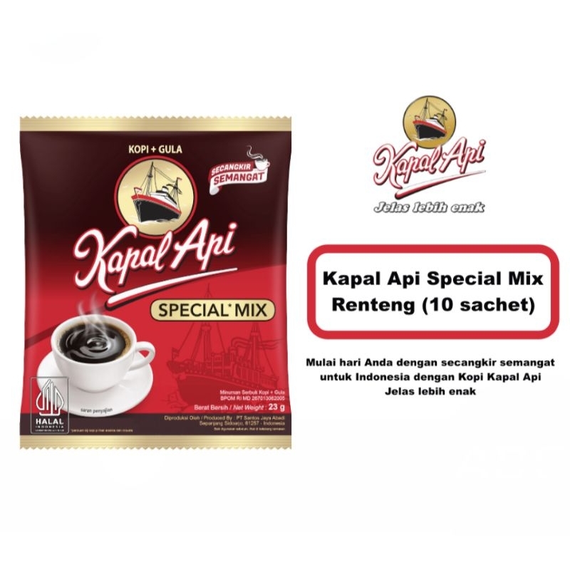 Kopi Kapal Api Special Mix adalah kopi yang terbuat dari biji kopi pilihan dan gula murni. Kopi ini diolah dengan mesin modern sehingga menghasilkan aroma dan rasa yang enak.