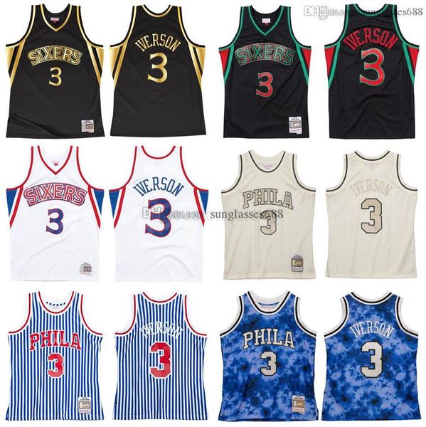 iverson stitched allen jersey mitchell & ness 1996-97 mesh hardwoods classics retro basketball jerseys men, Black