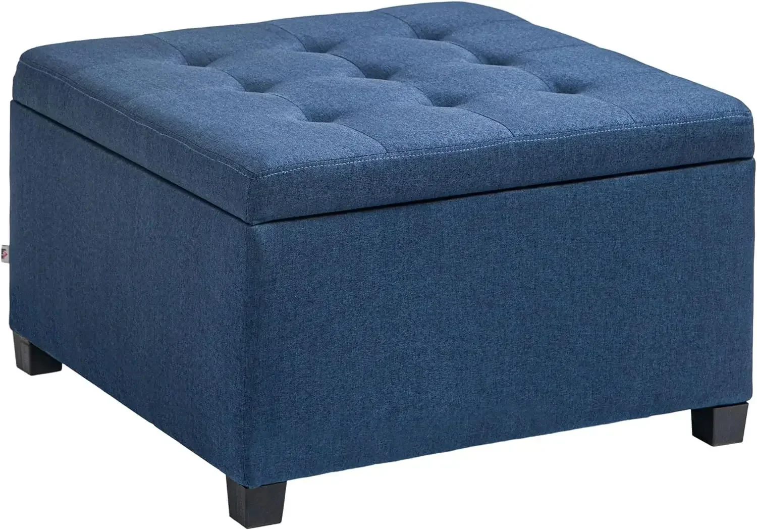 Fabric Tufted Storage Ottoman with Flip Top Seat Lid, Metal Hinge and Stable Eucalyptus Wood Frame for Living Room, Entryway