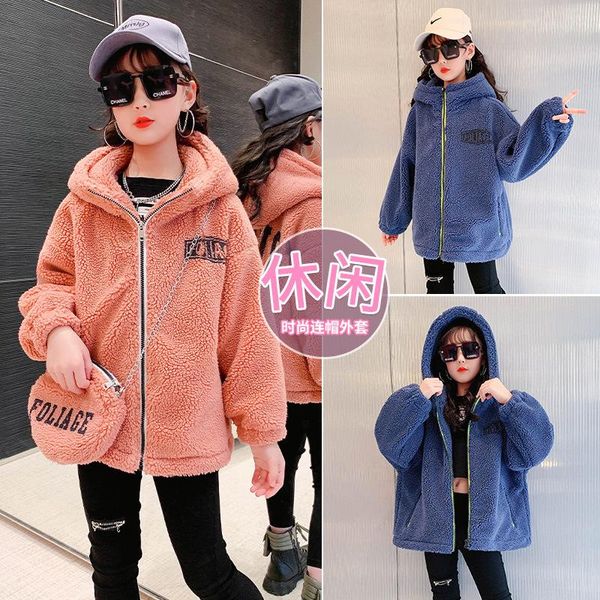 jackets girls hooded woolen coats 2021 winter kids outerwear girl warm thick zip jacket children clothing for, Blue;gray