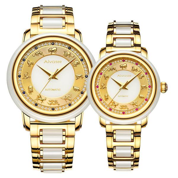 jade watch women fashion business men automatic mechanical zodiac embossed creative couple wristwatches, Slivery;brown