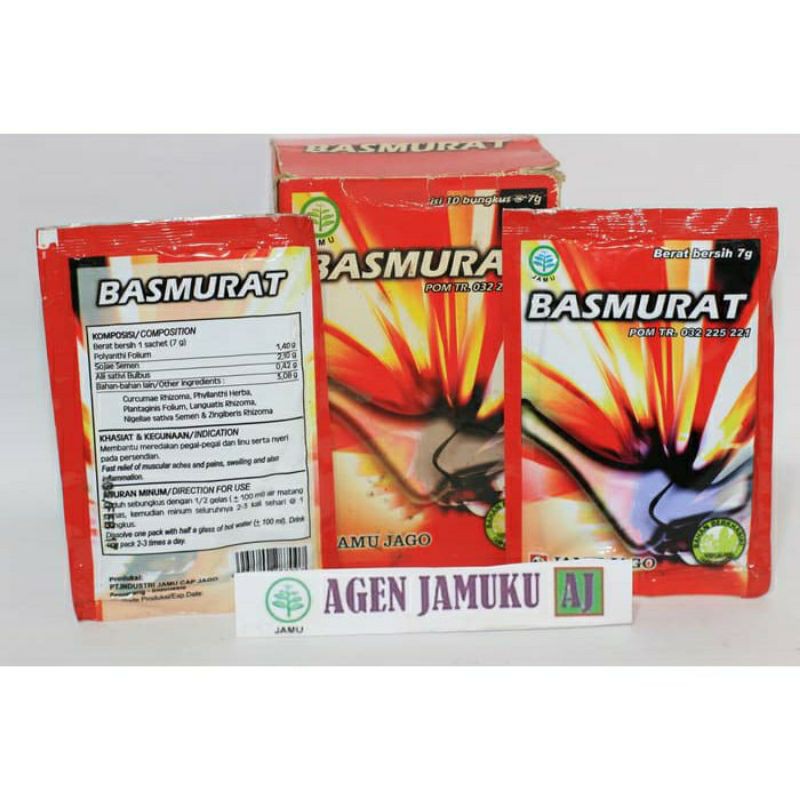 Jamu istimewa ultra halus BASMURAT membantu meredakan nyeri akibat encok, pegal-pegal dan linur pada persendian dengan komposisi :