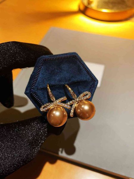 japanese d stud earrings pearl with s925 silver ear nails 41, Golden;silver