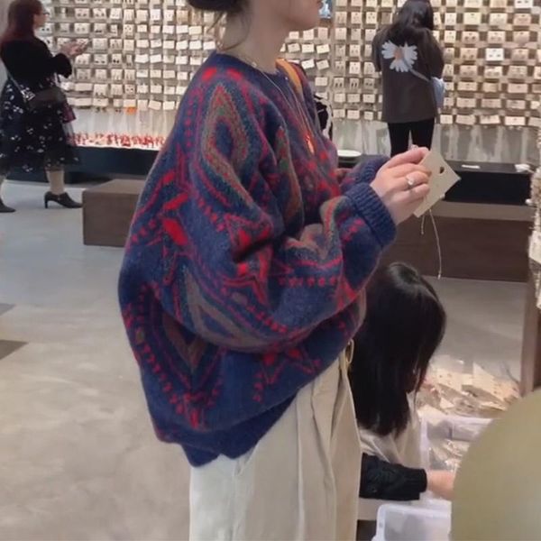 japanese style old lazy pullover sweater for women's fall / winter 2020 new style loose wear foreign retro hong kong, White;black
