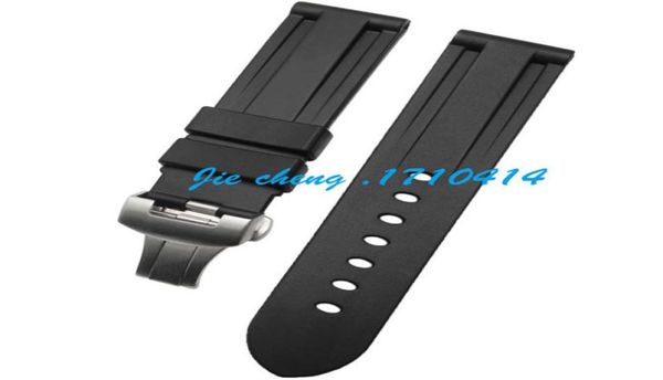 jawoder watchband 24mm men watch bands black diving silicone rubber strap stainless steel deployment buckle clasp for panerai lumi7319534, Black;brown