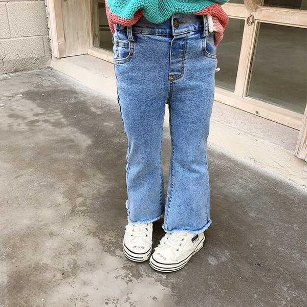 jeans autumn baby girls 2-7 years teenage girl fashion all-match casual bell-bottomed denim pants1, Blue