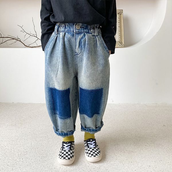 jeans korean style fashion patchwork jeans boys loose sand washing denim pants 17y 230225, Blue