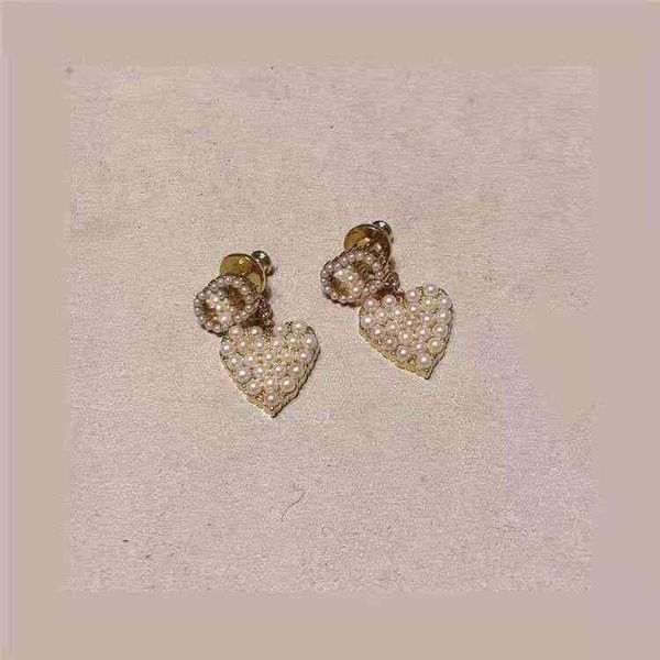 jewelry 2022 full diamond letter peach heart pearl earrings 925 silver needle, Golden