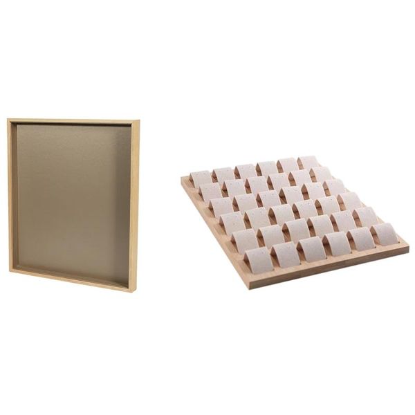 jewelry pouches, bags 1 pcs brushed leather stand ring tray & earring card velvet bamboo display holder, Pink;blue