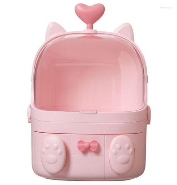 jewelry pouches cat shape plastic makeup storage box cosmetic organizer make up container desksundry case2086161, Pink;blue