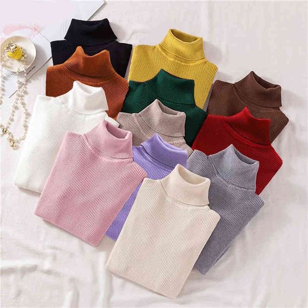 jmprs - women's high neck knitted korean tight long sve soft sweater, girls' basic autumn and winter fashion, White;black