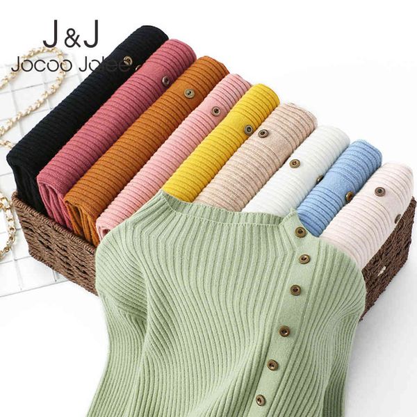 jocoo jolee women thrtleneck slim pullover korean button casual sweater solid harajuku knitting jumper winter basic 210518, White