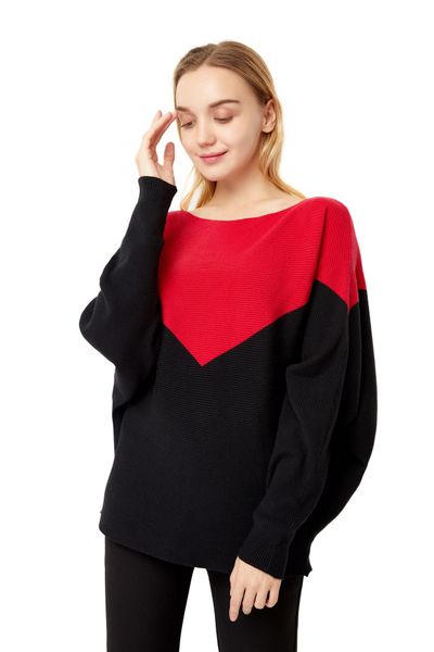 jogging clothing 2021 one-line collar female sweater bat shirt loose large size women pullover peach heart stitching, Black;red