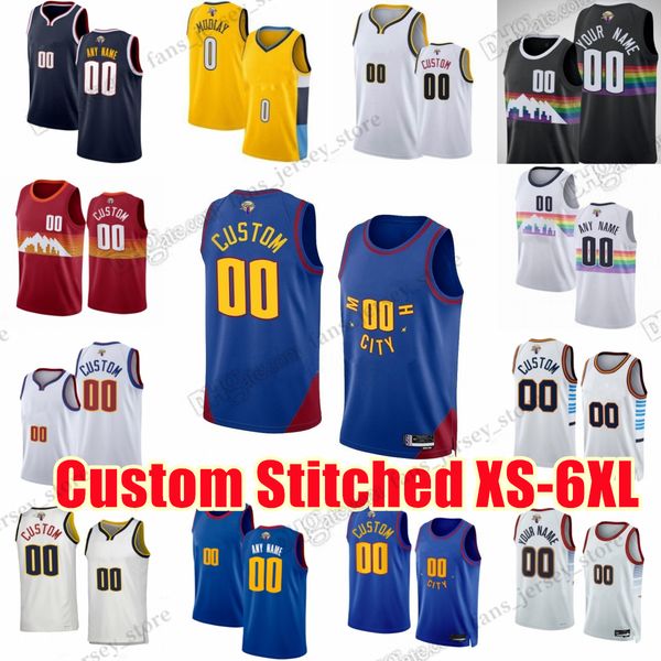 jokic jamal murray custom 2023 finals patch stitched basketball jerseys aaron gordon kentavious caldwell-pope michael porter jack white jeff, Black;red