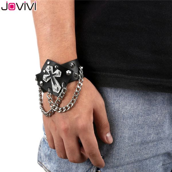 jovivi 6.5-8 " кожаный браслет манжеты заклепки шипованные спайк мотаться цепи дьявол панк браслет рок регулируемый браслет wristband wrap, Golden;silver