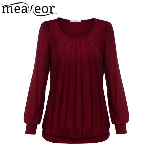 wholesale-meaneor women autumn winter long sleeve shirt famale scoop o-neck front drape fold outside inside wear solid color, White