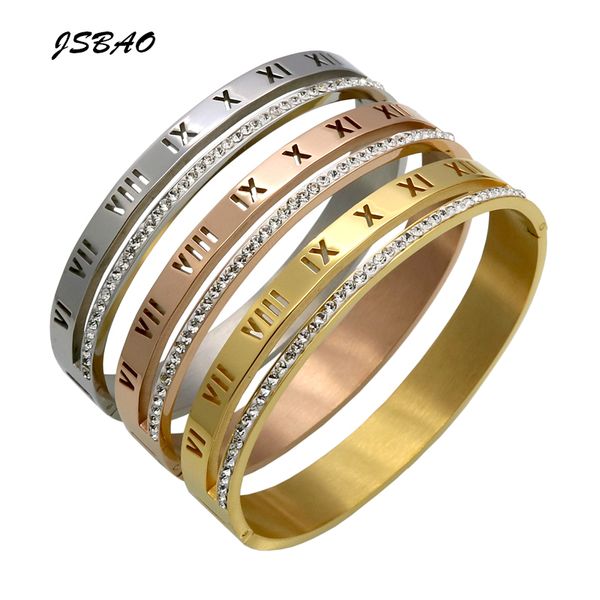 jsbao new arrival women bijoux brand design rhinestones arm luxury roman numerals cuff bracelets & bangles pulseira feminina, Black