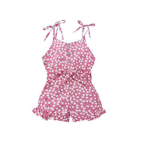 jumpsuits 2-6years summer toddler kids girls suspender jumpsuit fashion heart printing bandage high waist romper one-piece short pants, Blue