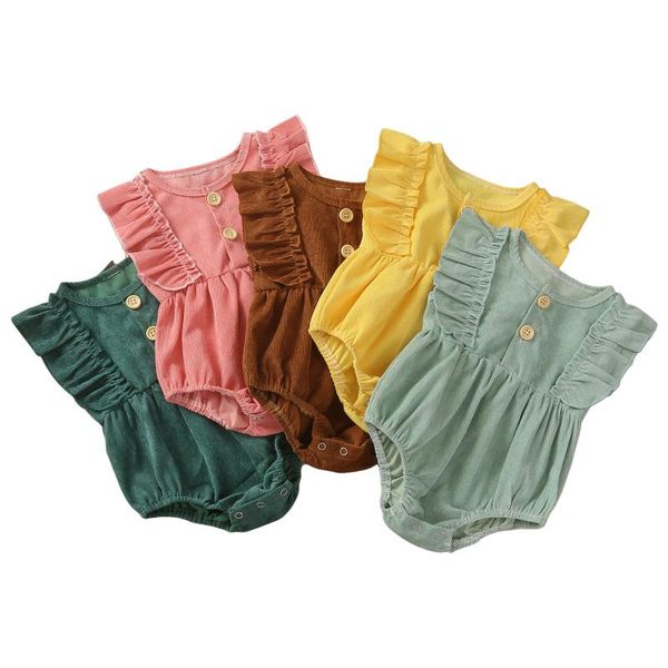 jumpsuits citgeesummer solid born baby boys girls romper ribbed jumpsuit flying ruffled sleeve one-piece casual clothes, Blue