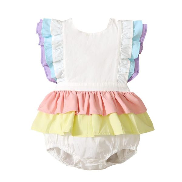jumpsuits cute born baby girl ruffles sleeve backless skirted romper jumpsuit playsuit outfits summer clothes, Blue
