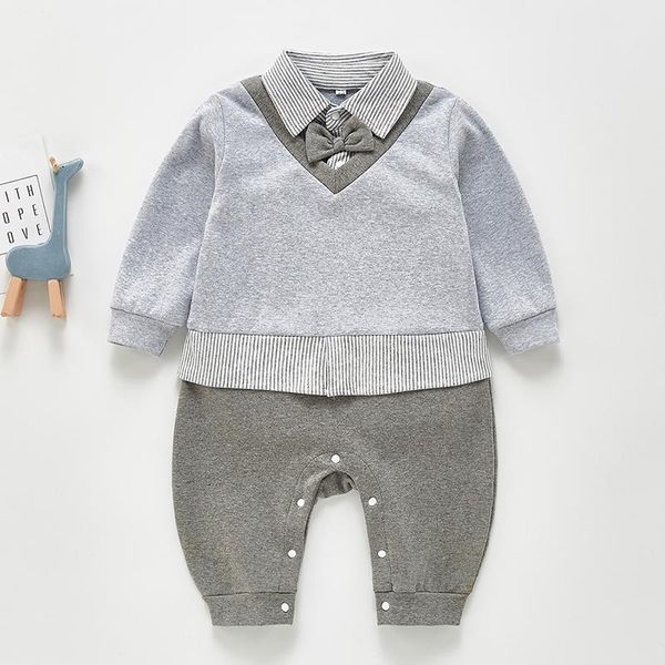 jumpsuits spring casual baby clothes boys stripes gentleman bow tie romper long sleeve boy rompers jumpsuit, Blue