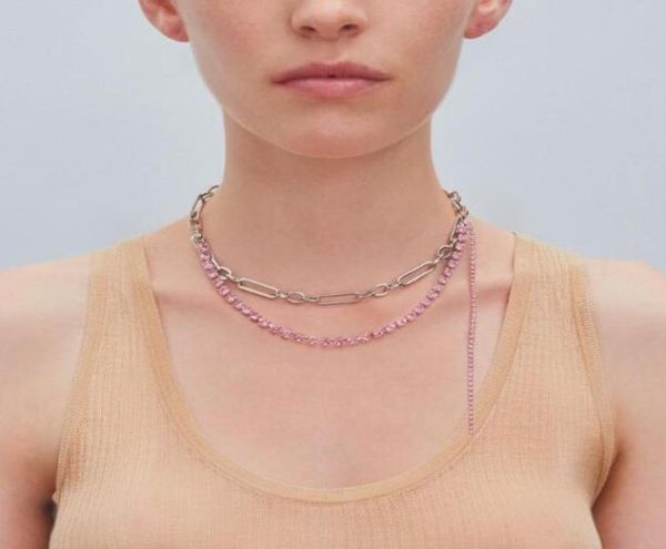 justine clenquet pink zircon women039s necklace french elegant chain double clavicle chain fashion bracelet birthday gift9108530, Silver