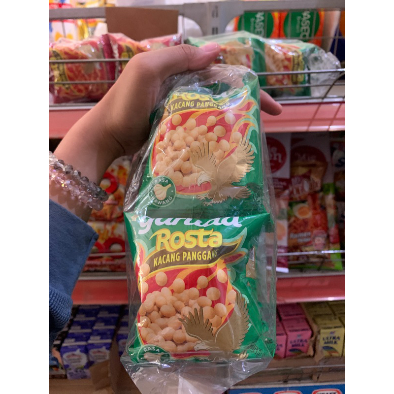 Kacang garuda rosta isi 20 bungkus dalam 1pak. terdiri dari 2 varian rasa yaitu rasa bawang dan pedas