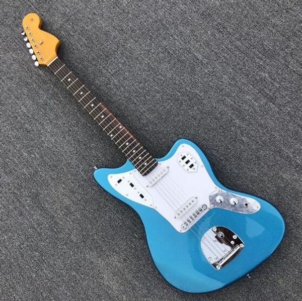 kaiyun factory customizes beautiful metal blue leopard electric guitar. jaguar guitar. silver accessories. 100% real pgraph