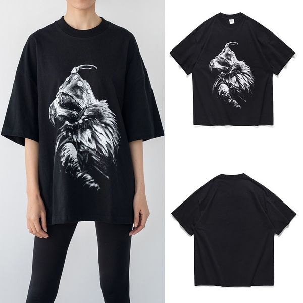 kanye high street same eagle print wash t-shirt loose couple short sleeve fashion brand, White;black