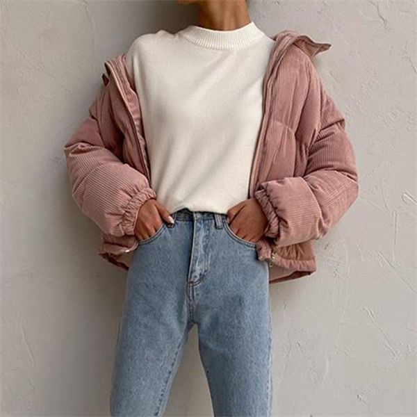 katara stand collar parkas women fashion sweet pink corduroy coats women elegant bread short cotton jackets female ladies jm