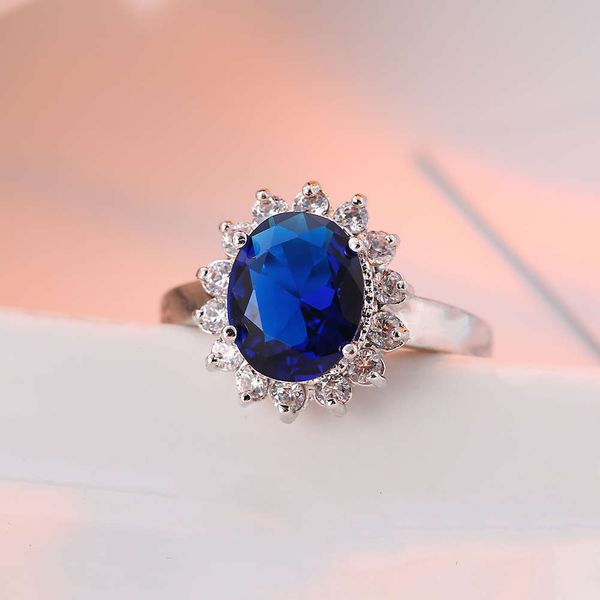 kate diana, princess of england, blue diamond ring, gold-plated inlay, Silver