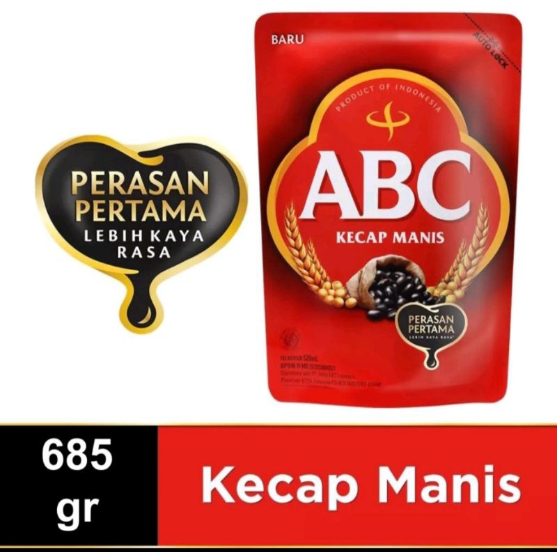 ABC Kecap Manis 685 gr terbuat dari bahan-bahan eksotis pilihan yang hanya diproduksi di pulau Jawa, yaitu gula aren dan kacang kedelai. Kecap manis ABC diproses secara modern dan higienis untuk menghasilkan kecap dengan kekentalan dan kemurnian rasa sehingga memberikan cita rasa istimewa pada setiap masakan. Rasa manis ABC Kecap Manis yang alami diperoleh dari gula aren yang dikeringkan menggunakan panas sinar matahari, menambah aroma dan memberi rasa manis istimewa pada berbagai masakan. Dapat digunakan untuk berbagai sajian masakan, seperti tumisan, goreng, bakar atau panggang serta untuk celupan dan topping. Hadir dalam kemasan pouch praktis dengan teknologi auto lock juga memudahkan saat digunakan dan disimpan.