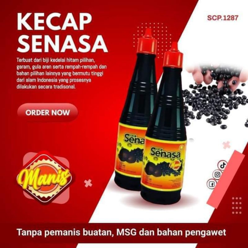 Kecap Sedap Nasa (SENA) merupakan produk Rumah Tangga dari PT. Natural Nusantara. Kecap sedap Nasa ini terbuat dari biji kedelai hitam pilihan, gula aren, garam dan bahan-bahan pilihan lainnya serta rempah-rempah yang bermutu tinggi dari alam Indonesia yang diproses secara tradisional. Kecap Sedap Nasa terbuat dari bahan alami dan bebas dari bahan pengawet, pemanis buatan, bahan pengental, bahan pewarna dan bebas MSG (monosodium glutamat) sehingga sangat cocok digunakan sebagai penyedap makanan. Memiliki aroma yang khas dan citra rasa tinggi. PERIZINAN : Din Kes.