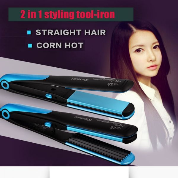 kemei 2 in 1 plauku garbanotuvas corrugated straightening iron curling corrugated iron styling tools corn clip plate splint straightener, Black