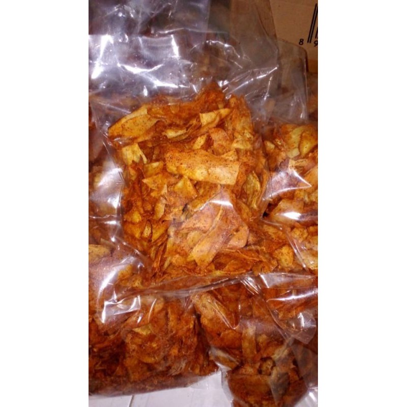 keripik terbuat dari singkong dan menggunakan beberapa bumbu yang dicampurkan