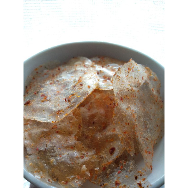 Keripik kaca dengan 3 variant rasa yaitu original, balado dan pedas, cocok buat dijadikan cemilan.