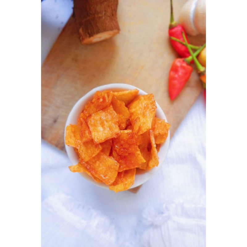 Keripik singkong / manggleng / balung kuwuk varian rasa pedas manis. Tekstur renyah tidak keras, karena tidak melalui proses jemur. Dibuat dari singkong pilihan, cabai asli, dan bahan - bahan premium. Non MSG dan halal. Produksi setiap hari jadi keripik sampai ke tangan cust dalam keadaan fresh.