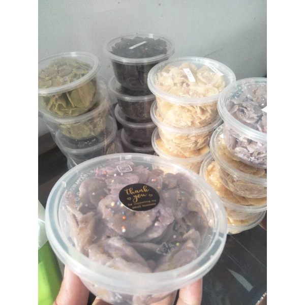 Keripik pisang kriuk Varian : coklat, green tea, strowbery, anggur, tiramisu.