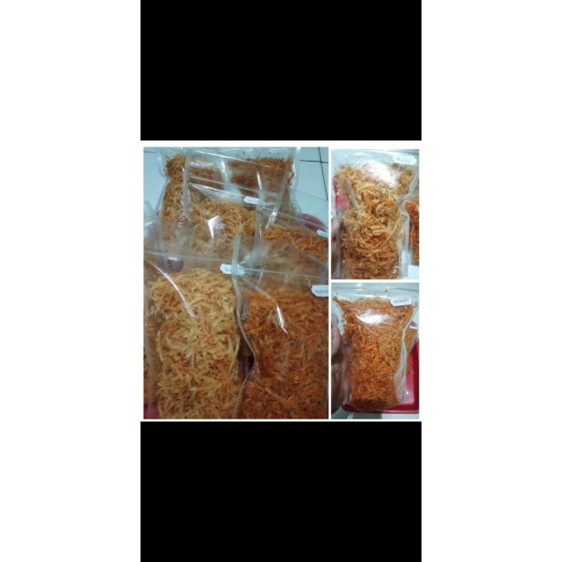 tersedia keripik singkong 100 gram dengan rasa balado, keju dan asin.