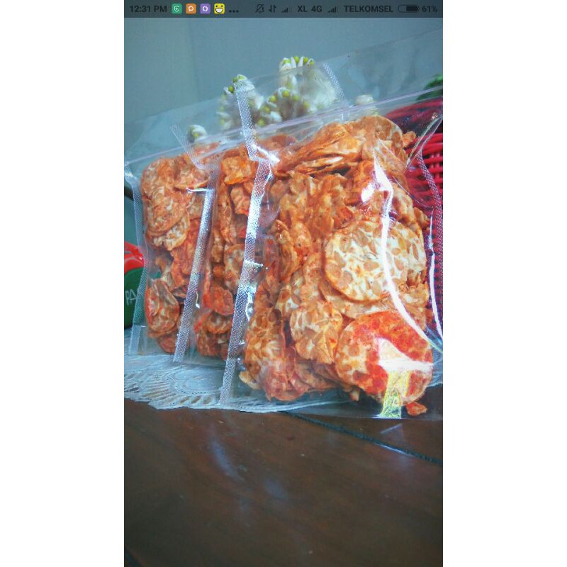 Keripik tempe rasa pedas dari level 1-3
