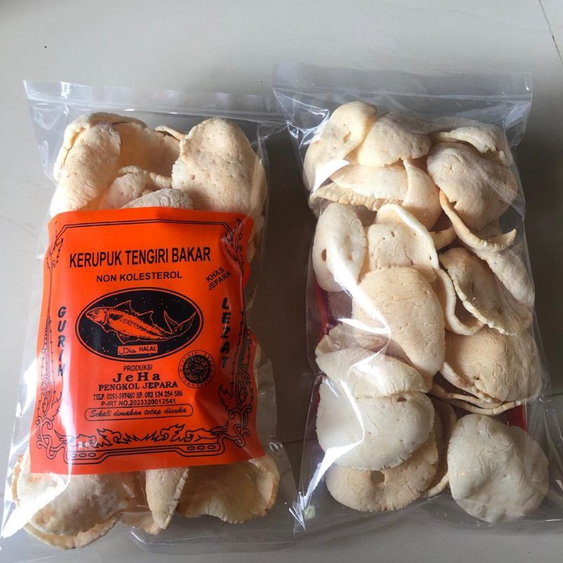 erupuk Bakar Tengiri adalah Kerupuk Khas Jepara Jawa Tengah . Kerupuk Bakar Tengiri JEHA terbuat dari ikan tenggiri asli dengan cara digoreng dengan pasir bersih dan tanpa menggunakan minyak dengan bahan adonan tepung tapioka, telur, garam dan bumbu lainnya.