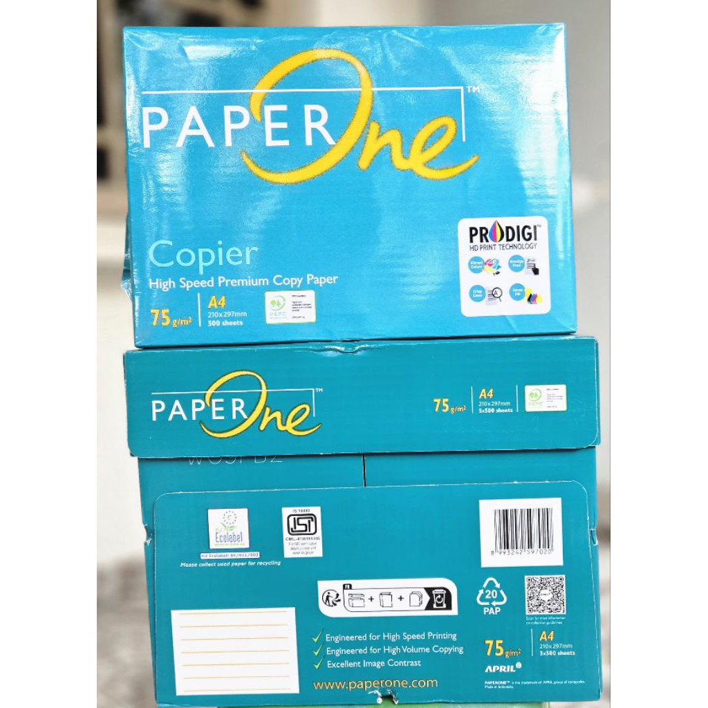 kertas HVS putih A4 75gr paper one ( per 5 Rim )