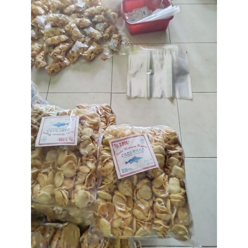 camilan renyah yang terbuat dari singkong yang diiris tipis dan digoreng atau dikukus hingga kering